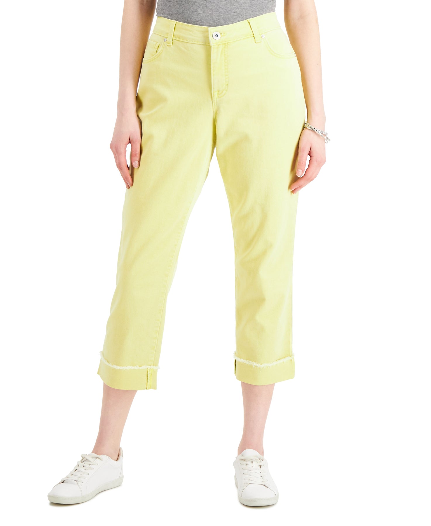 Hit all the right style marks in these curvy-fit capri jeans from Style & Co designed in stretch denim for great recovery. Approx. model measurements: height: 5'10"; bust: 31-1/2"; waist: 24"; hips: 35" Approx. inseam: 24" Mid rise: approx. 10-3/4" Front zipper and button closure; belt loops Cuffed hem Secret Slim Pocket Panel feature: holds-you-in and helps give you a sleek, smooth look Cotton/polyester/spandex Machine washable Imported Web ID: 14532755