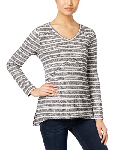Style & Co Petite Ribbed Striped High-Low Top