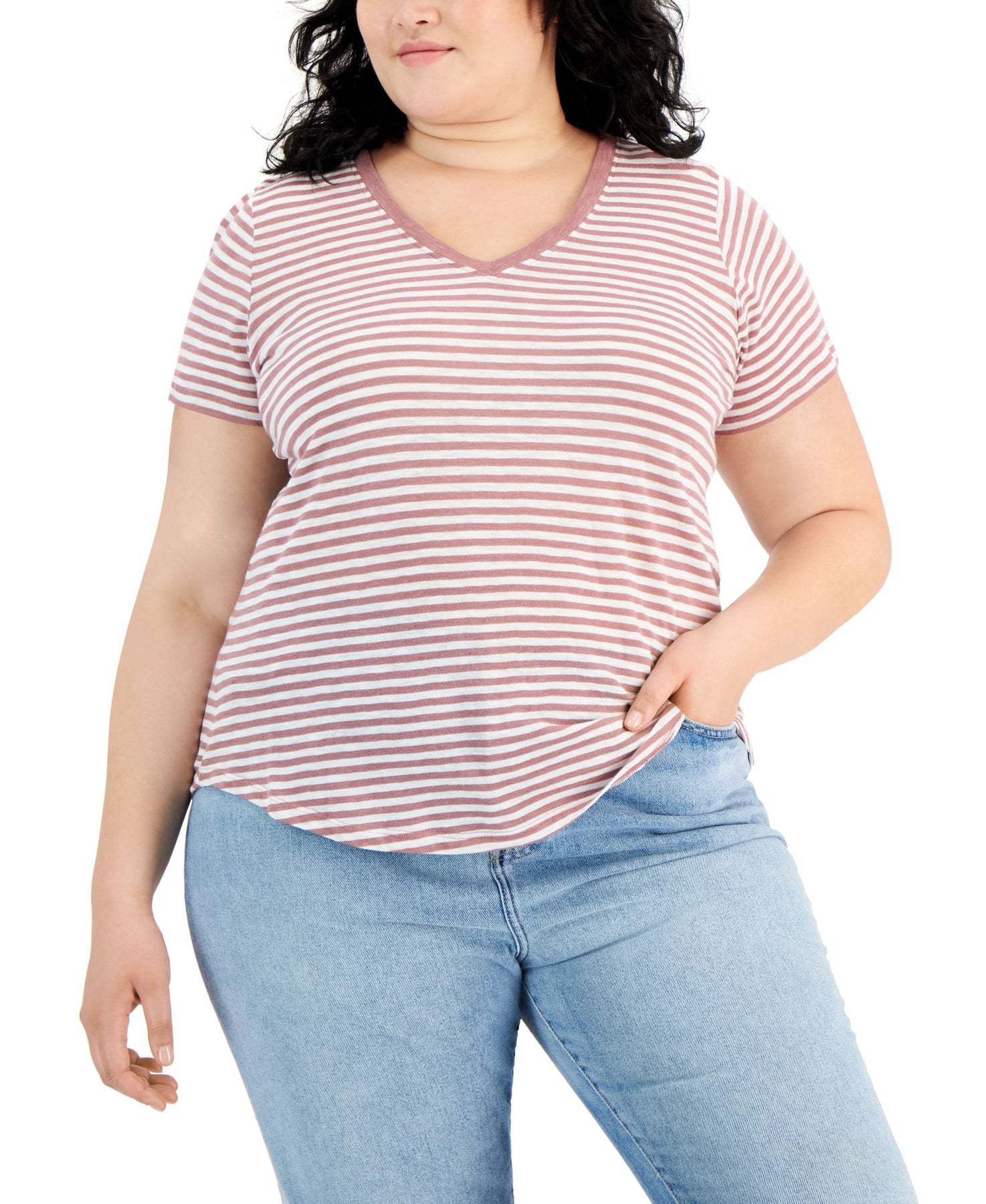 Style & Co Plus Size Classic Striped V Neck T-Shirt