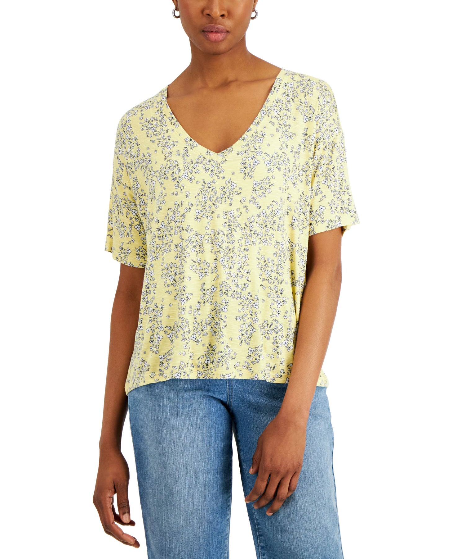 Style & Co Womens Drop Shoulder Floral Print T-Shirt