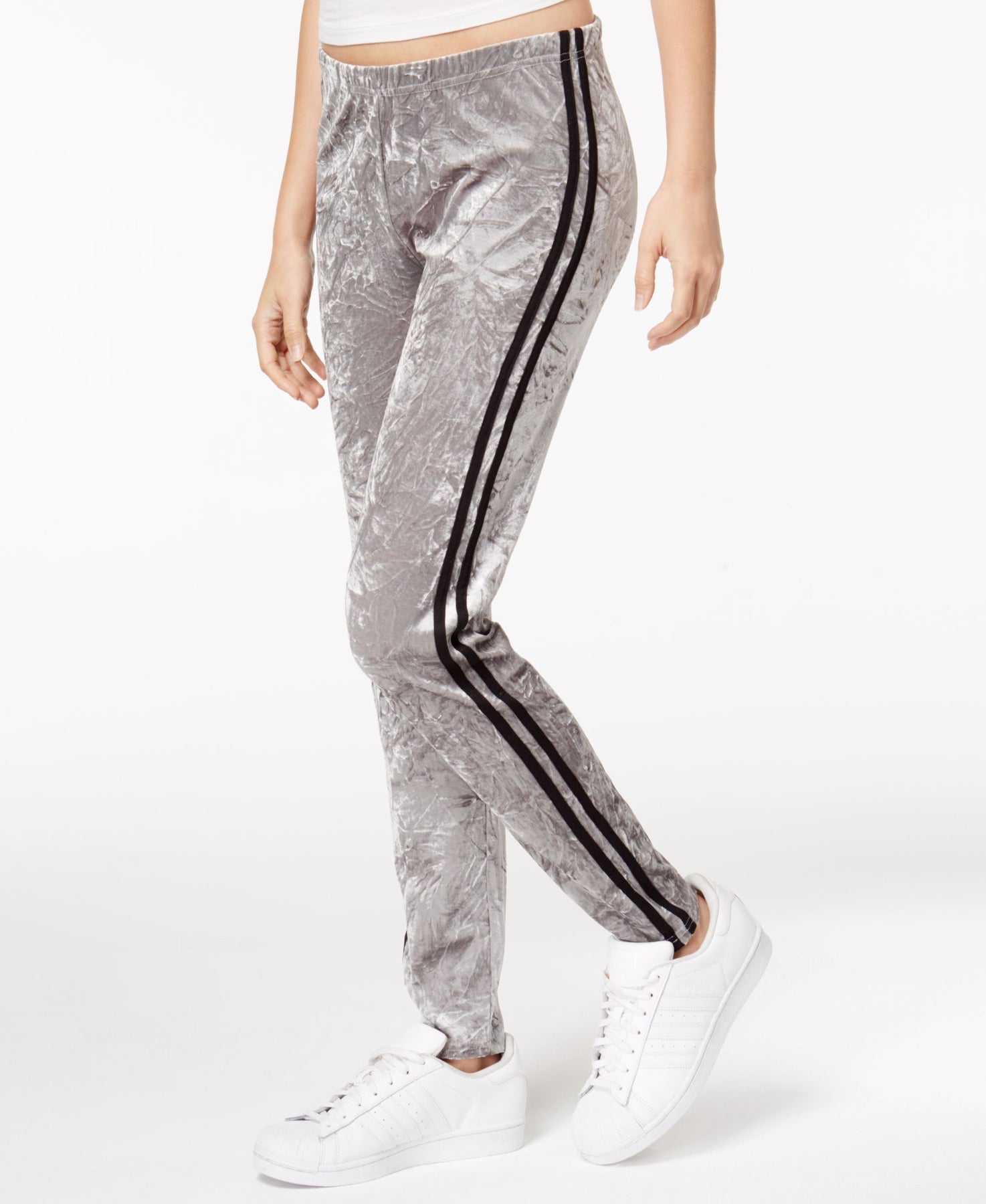 Mid rise; skinny fit through hips and thighs; skinny leg Stripes down each leg gives a sporty vibe to these soft velvet leggings from Ultra Flirty by Ikeddi.