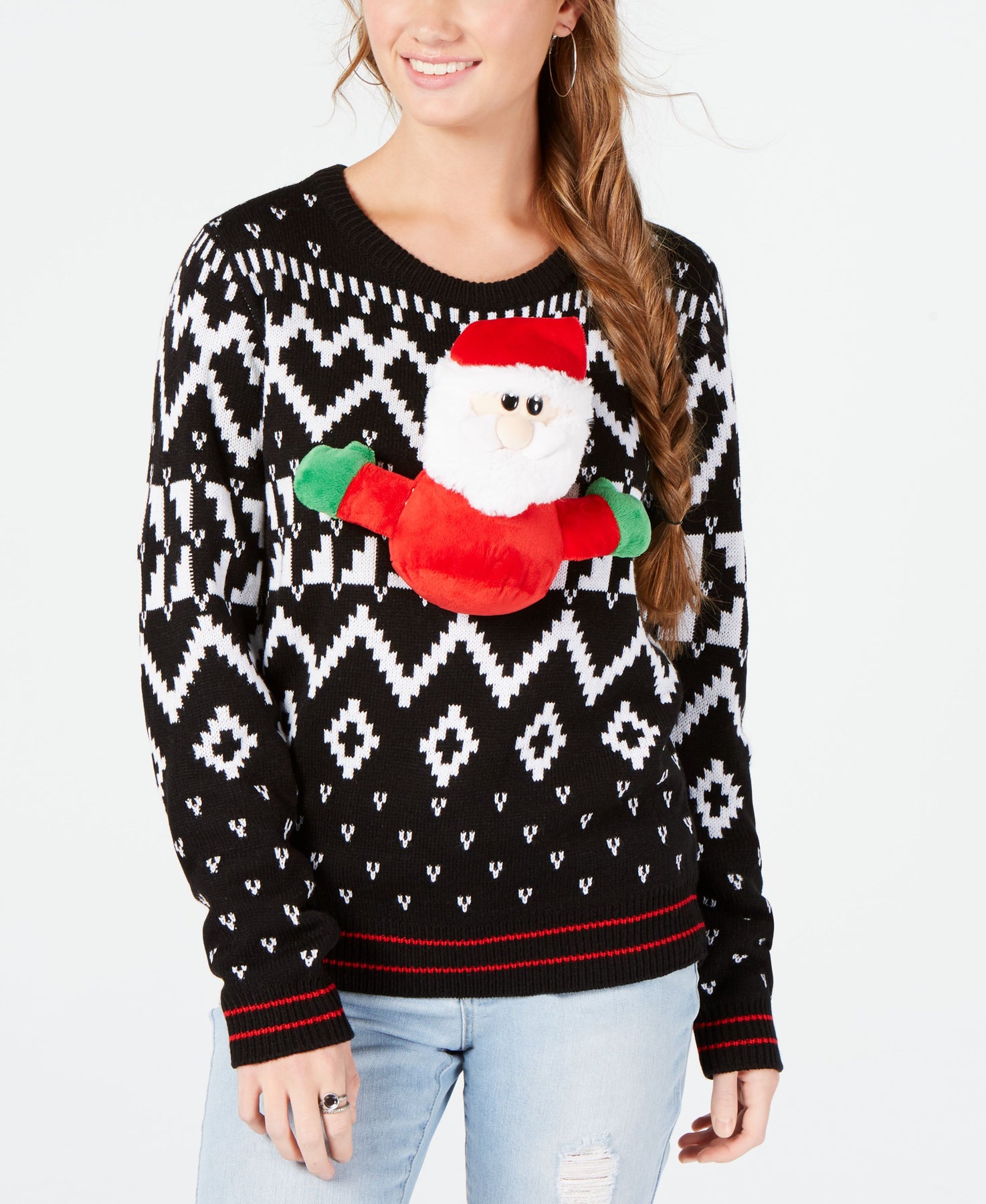 Ultra Flirt Juniors Stuffed Santa Printed Sweater