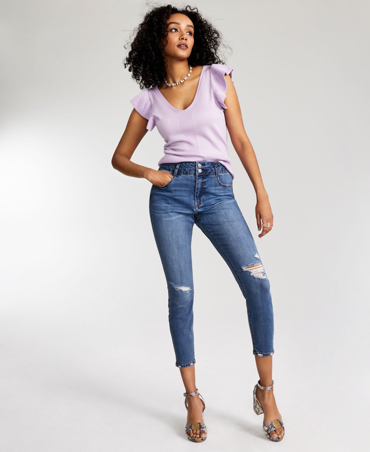 Vanilla Star Juniors' Curvy Double-Button Skinny Jeans