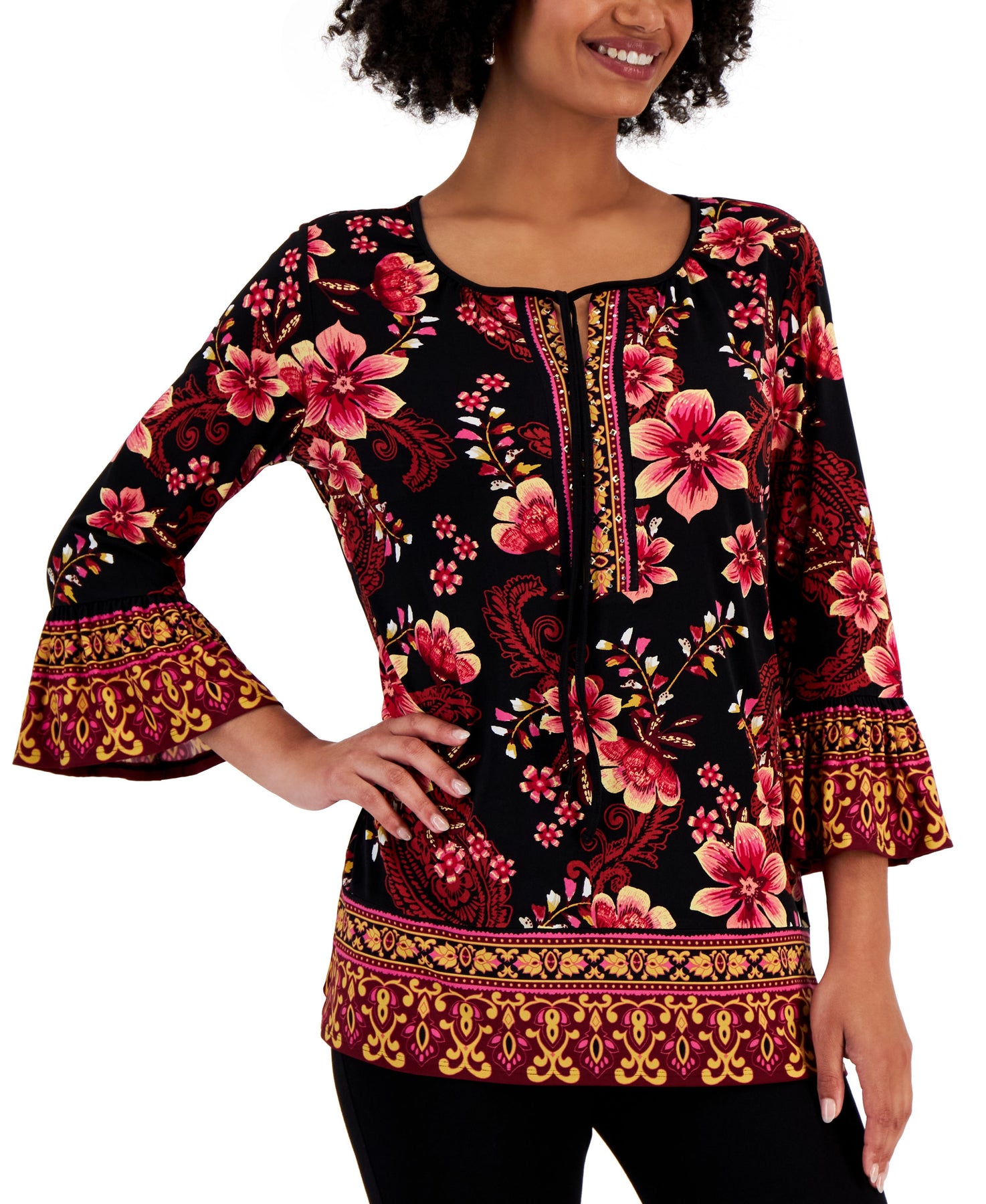 Women's Camila Border-Print Embellished Top