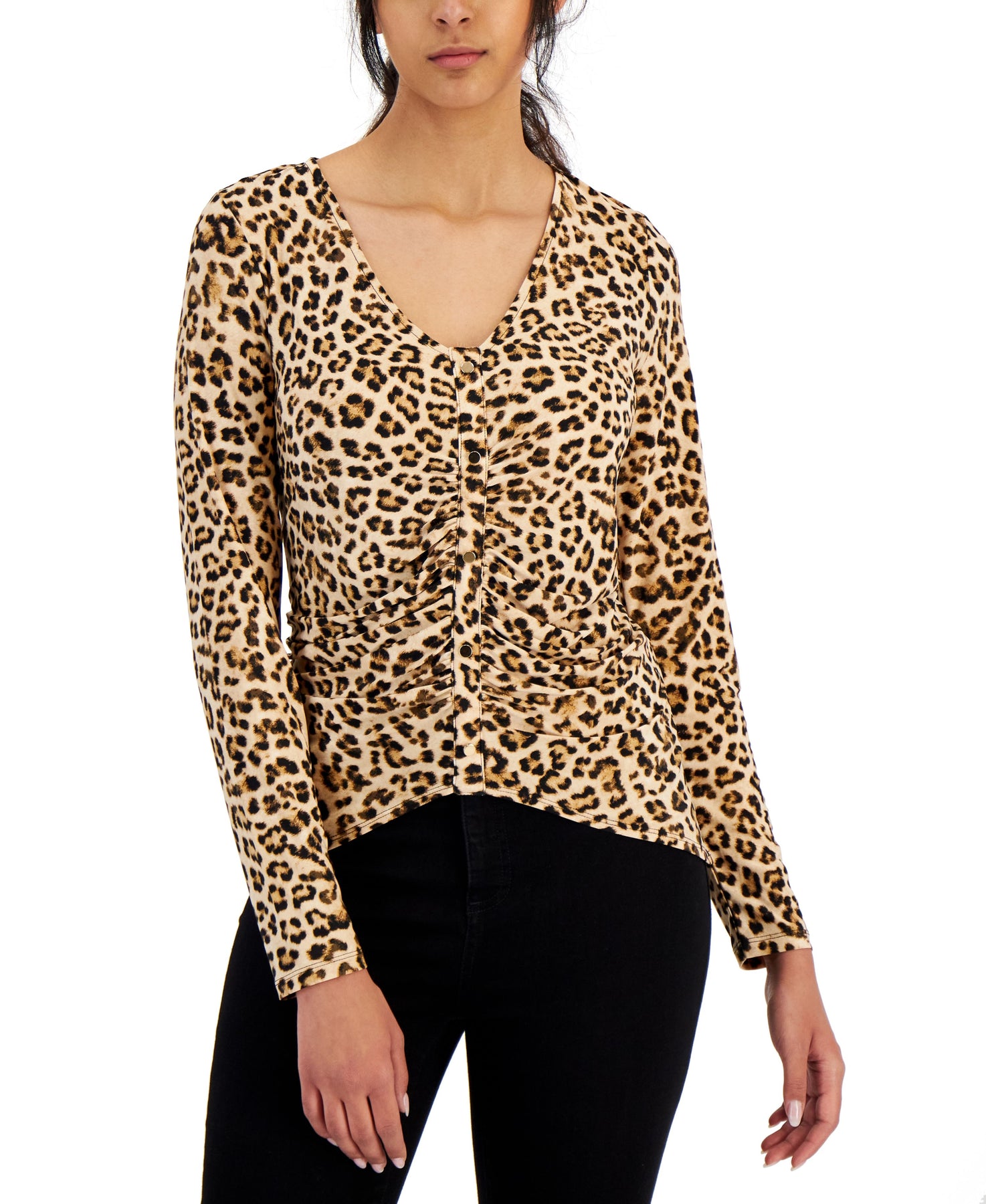Women's Leopard Ruched-Front Top