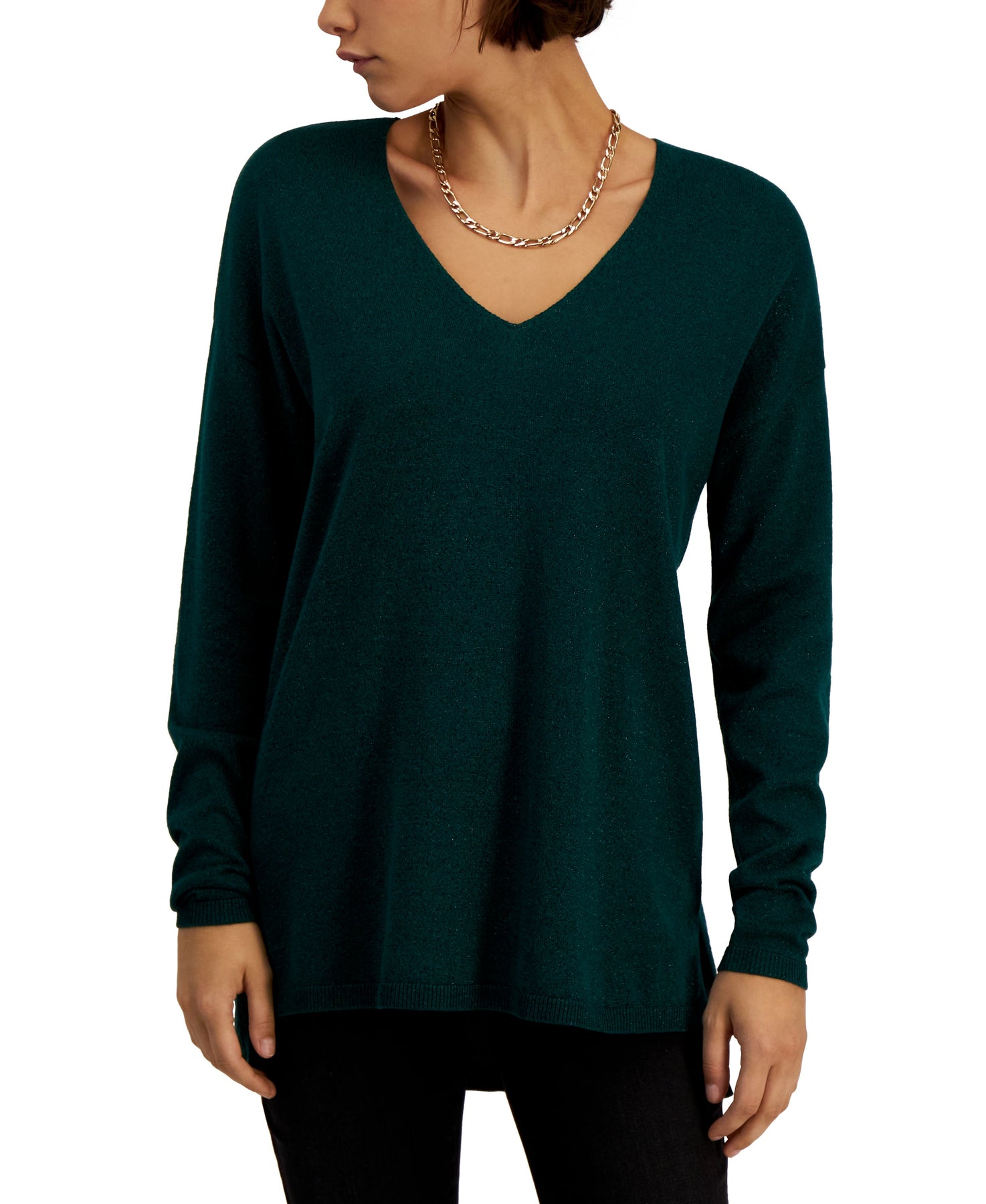 Fashioned for a modern drape, this tunic from I.N.C International Concepts is an ideal addition to any chic closet. Approx. 27-1/2" long V-neck Shimmer design By choosing cotton products from this brand, you're supporting investment in Better Cotton's mission. This product is sourced via a system of mass balance and therefore may not contain Better Cotton Cotton/viscose/polyester/metallic Machine washable Imported Web ID: 14124348