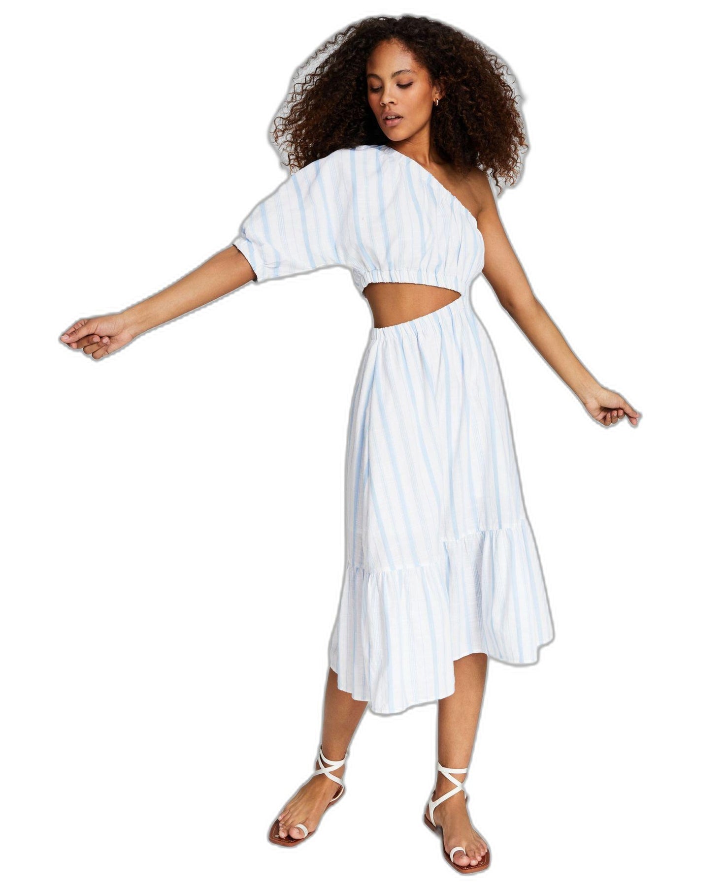 Women's Striped One-Shoulder Cutout Cotton Dress